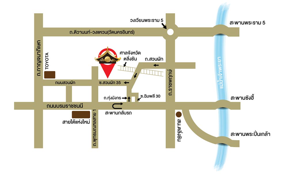 แผนที่ร้านอาหารเฮือนลำพูน สาขาสวนผัก